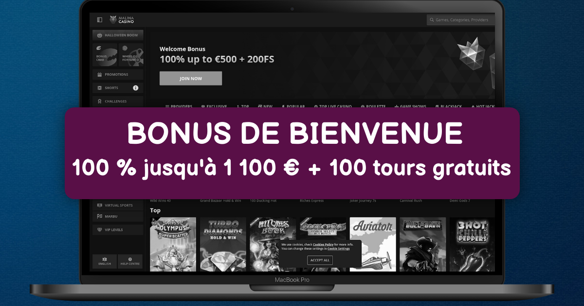 Quel est le bonus de bienvenue de Malina Casino ?